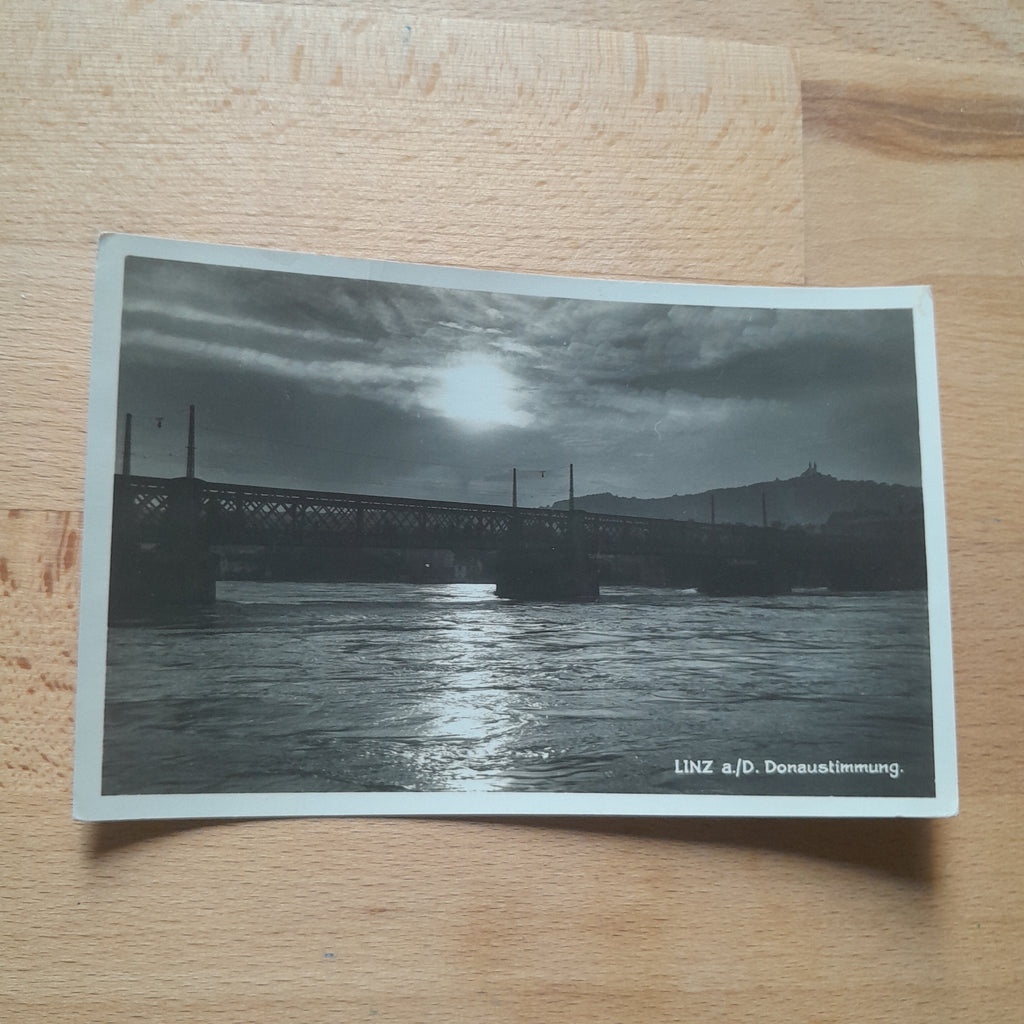 AK Linz Donaustimmung. Gelaufen. Kleinformat. Verlag: Leitenmüller. Nummeriert: 2074. Zustand: Knick am oberen Rand.