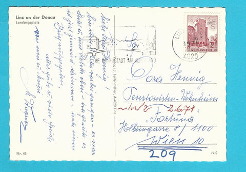 AK Linz. Landungsplatz. Gelaufen. Großformat. Verlag: Leitenmüller. Nummeriert: 46. Zustand: linkes unteres Eck und am linken Rand geknickt.