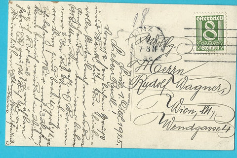 AK Linz. Motiv am Pöstlingberg. (1925) Gelaufen. Kleinformat. Verlag: Kar. Nummeriert: 1328. Zustand: rechtes unteres Eck geknickt, Knick am linken Rand in der oberen Hälfte.