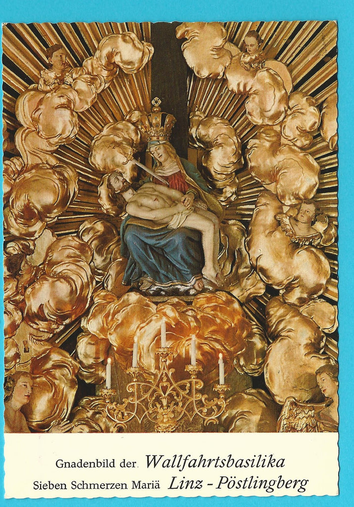 AK Linz. Pöstlingberg, Gnadenbild der Wallfahrtsbasilika. Sieben Schmerzen Mariä. Gelaufen. Großformat. Verlag: Westmüller. Nummeriert: 165. Zustand: gut.