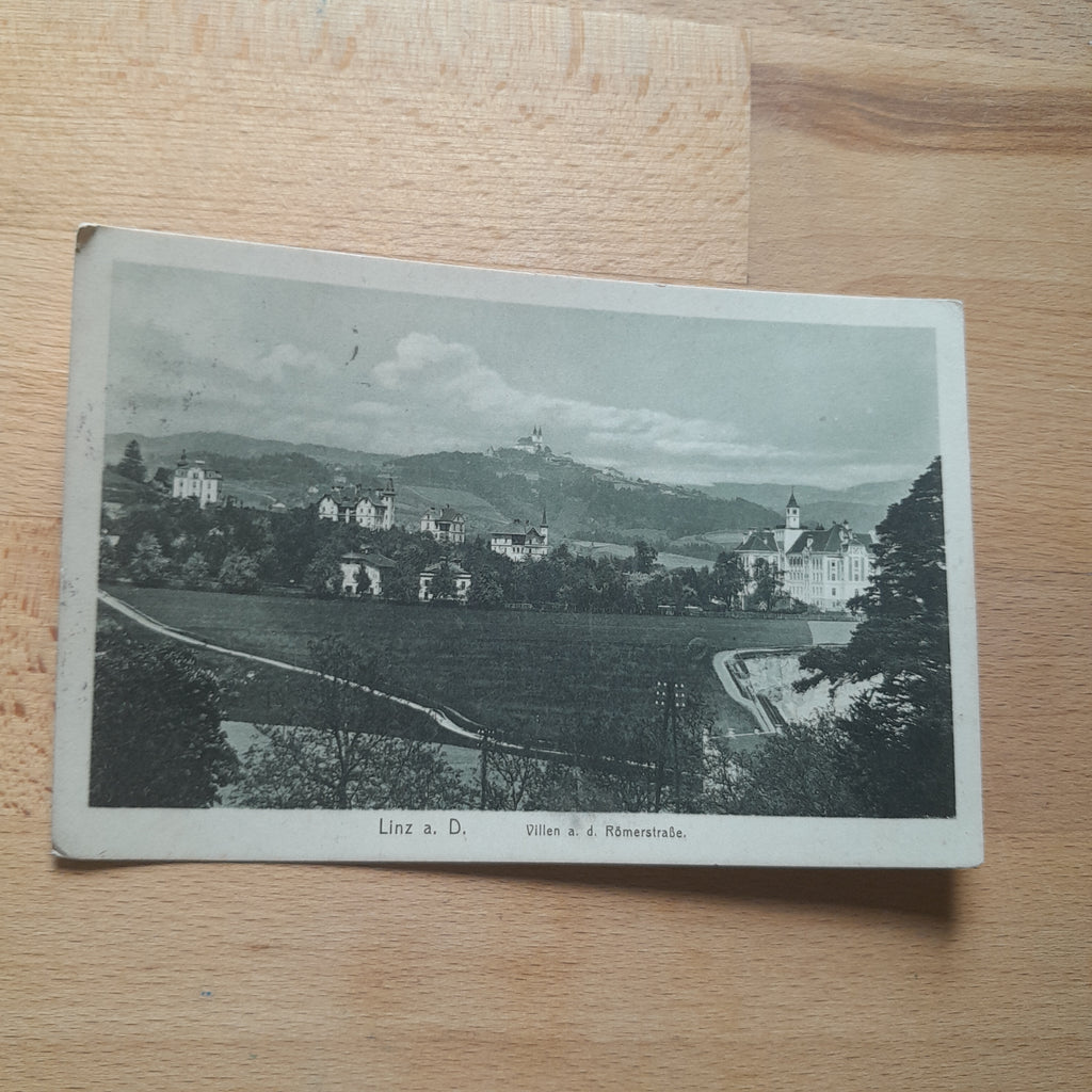 AK Linz. Villen an der Römerstraße. Gelaufen, aber Briefmarke wurde entfernt. Kleinformat. Zustand: gut.