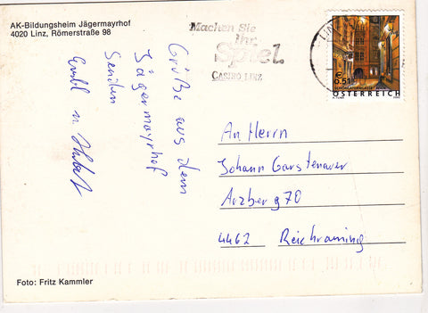 AK Linz, Römerstraße 98. AK-Bildungsheim Jägermayrhof. Gelaufen. Großformat. Verlag: Kammler. Zustand: Knick über dem rechten oberen Eck, linke Ecken angeknickt, sonst O.k.