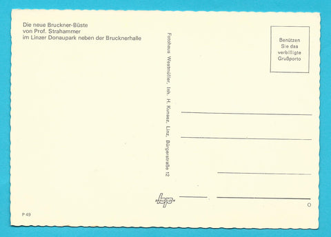 AK Linzer Donaupark. Die neue Bruckner-Büste. Ungelaufen. Großformat. Verlag: Westmüller. Nummeriert: P 49. Zustand: gut.
