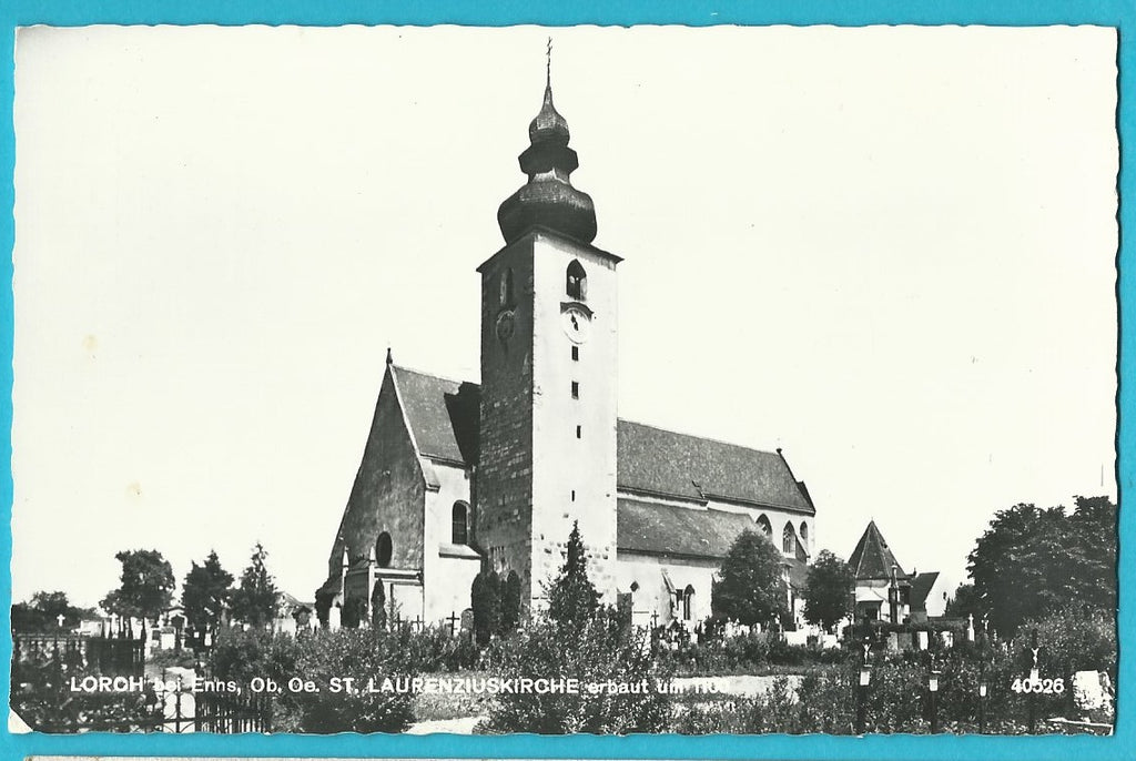 AK Lorch bei Enns. St. Laurenziuskirche. (1969) Gelaufen. Kleinformat. Verlag: Ledermann. Nummeriert: 40526. Zustand: gut.
