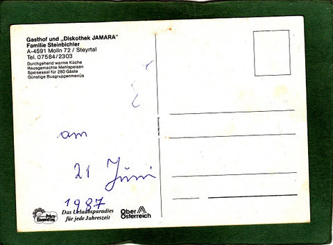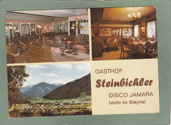 AK Molln im Steyrtal. Gasthof Steinbichler. Disco Jamara. Molln 72. Ungelaufen. Großformat. Verlag: Druckerei Bad Hall. Zustand: etwas zerkratzt, Knick am unteren Rand beim linken Eck.