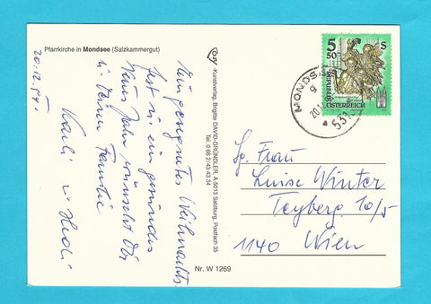 AK Pfarrkirche in Mondsee. Frohe Weihnachten... Gelaufen. Großformat. Verlag: Cosy. Nummeriert: W 1269. Zustand: gut.