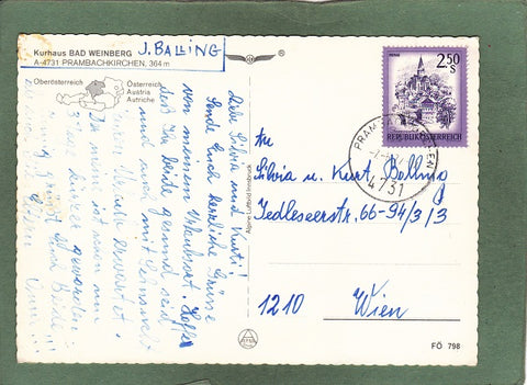 AK Prambachkirchen, Kurhaus Bad Weinberg. Gelaufen 1977. Großformat. Verlag: Alpine Luftbild. Zustand: stärker bestoßen.