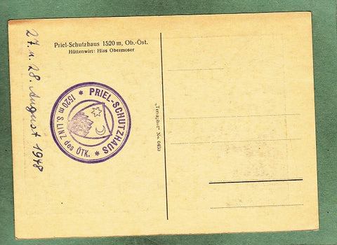AK Priel-Schutzhaus. Hüttenwirt Hias Obermoser. Ungelaufen. Großformat. Verlag: Terraphot Nr. 0450. Zustand: gut, linkes oberes Eck angeknickt.