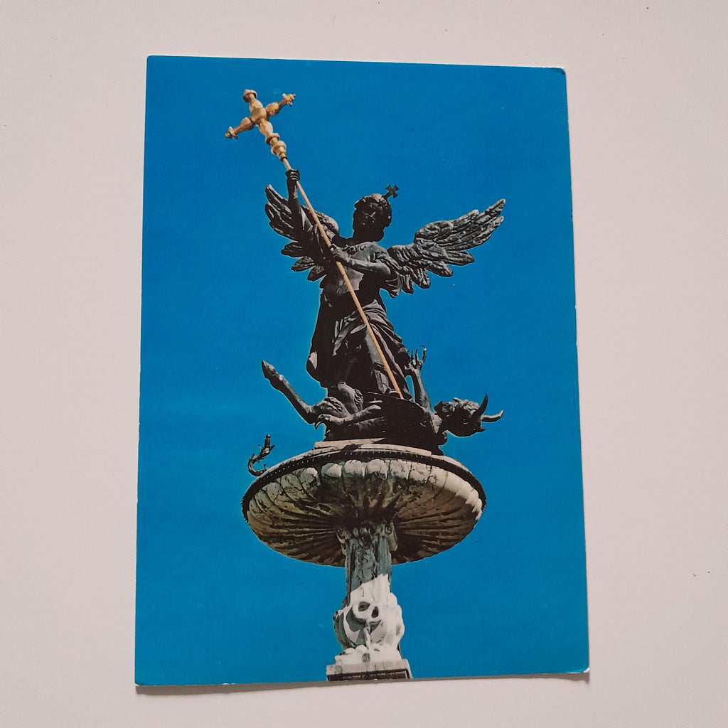 AK Reichersberg am Inn. St. Michael Bronzefigur vom Brunnen des Augustiner Chrorherrenstiftes. Gelaufen. Großformat. Zustand: gut.