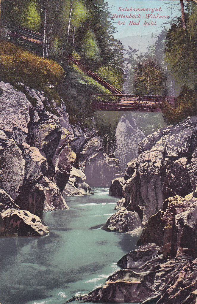 AK Rettenbach-Wildnis bei Bad Ischl. (1906) Gelaufen. Kleinformat. Verlag: Brandt. Nummeriert: 320. Zustand: rechtes unteres Eck mehrfach geknickt, sonst O.k.
