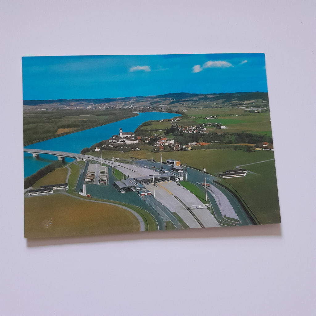 AK Suben am Inn mit Autobahnbrücke über dem Innstausee. Ungelaufen. Großformat. Verlag: Scheurecker. Nummeriert: 2602. Zustand: gut.