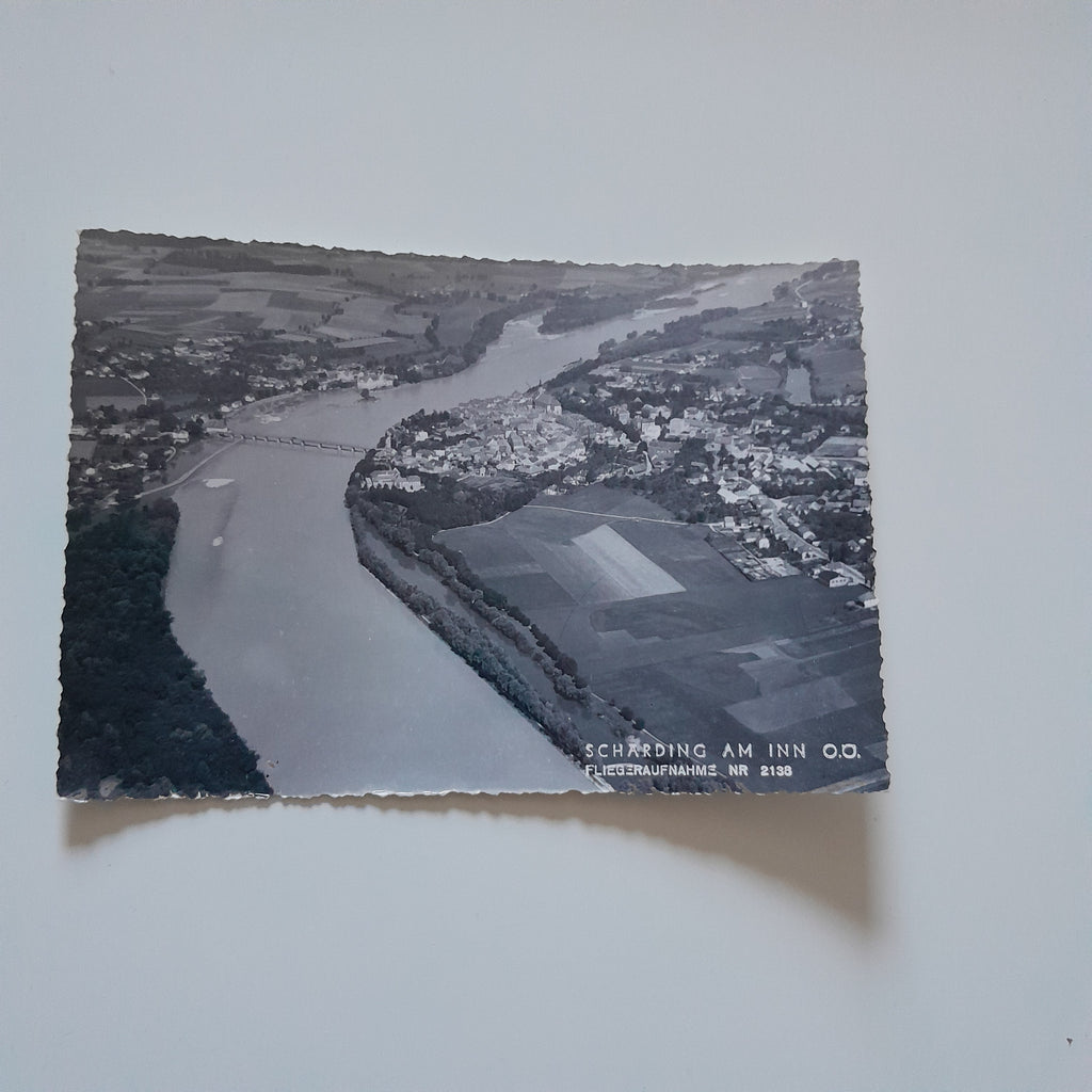 AK Schärding am Inn. Fliegeraufnahme. Gelaufen. Großformat. Nummeriert: 2138. Zustand: Knicke am rechten Rand.