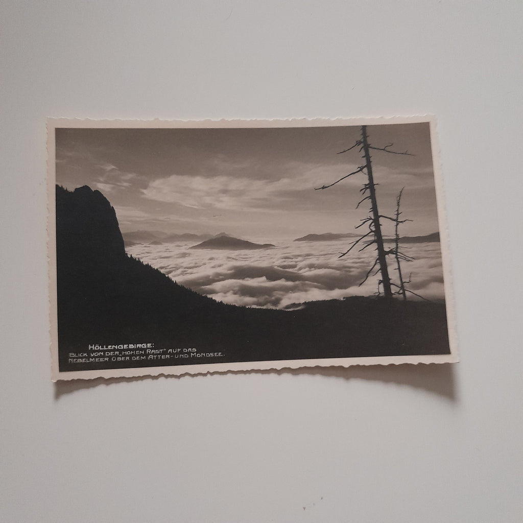 AK Höllengebirge: Blick von der Hohen Rast auf das Nebelmeer über dem Atter- und Mondsee. Ungelaufen. Kleinformat. Verlag: Voglmayr. Zustand: gut.