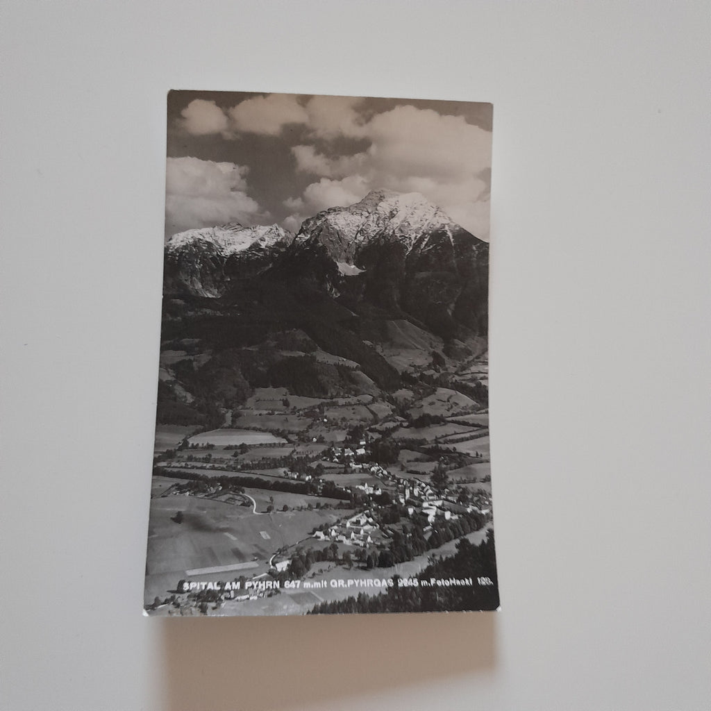 AK Spittal am Pyhrn mit Gr. Pyhrgas. Gelaufen, aber Briefmarke wurde entfernt. Kleinformat. Verlag: Hackl. Nummeriert: 128. Zustand: gut.