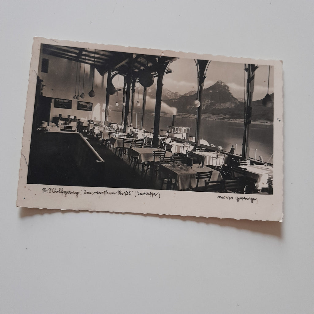 AK St. Wolfgang. Im weissen Rössl. Gelaufen. Kleinformat. Verlag: Gastberger. Nummeriert: 139. Zustand: Stecknadeldurchstich am oberen Rand in der Mitte, leicht fleckig.
