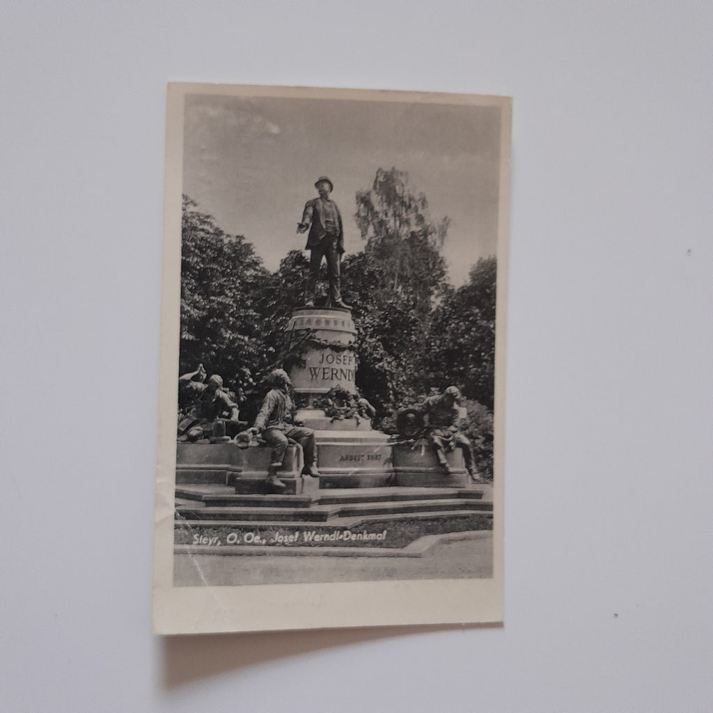 AK Steyr. Josef Werndl-Denkmal. Gelaufen. Kleinformat. Verlag: Ledermann. Nummeriert: 18294. Zustand: stärker bestoßen.