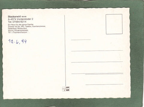 AK Stockerwirt. Stodertal. Vorderstoder 2. Ungelaufen. Großformat. Verlag: Jost Color Lux. Zustand: gut, linkes unteres Eck geknickt.