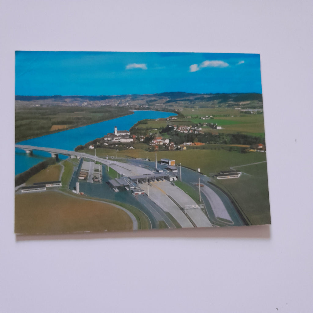 AK Suben am Inn mit Autobahnbrücke über dem Innstausee. Gelaufen. Großformat. Verlag: Scheurecker. Nummeriert: 2602. Zustand: linkes oberes Eck und am linken und unteren Eck geknickt.