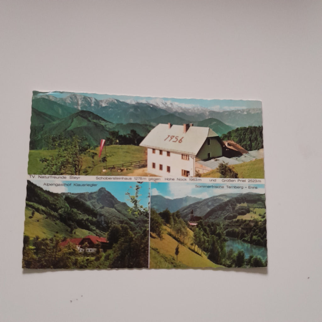 AK Schobersteinhaus. Naturfreunde Steyr. Alpengasthof Klausriegler. Ternberg. Gelaufen. Großformat. Verlag: Frühauf. Nummeriert: 4400/22. Zustand: gut, leicht bestoßen.