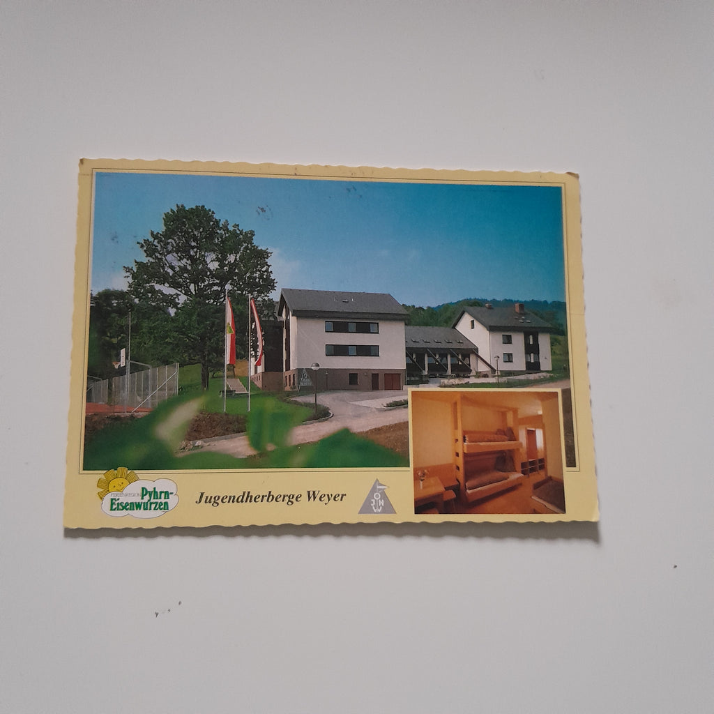 AK Jugendherberge Weyer. Mühlern 56. Gelaufen. Großformat. Verlag: Welsermühl. Zustand: gut, rechtes oberes Eck geknickt.
