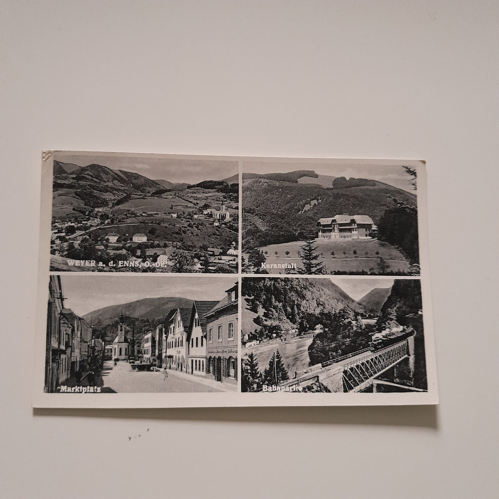 AK Weyer an der Enns. Gelaufen, aber Briefmarke wurde entfernt. Kleinformat. Verlag: Ledermann. Nummeriert: 39655. Zustand: leicht bestoßen.
