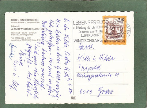 AK Windischgarsten. Hotel Bischofsberg. Elfriede und Herbert Löger. Gelaufen 1984. Großformat. Verlag: Jost Druck. Zustand: gut.