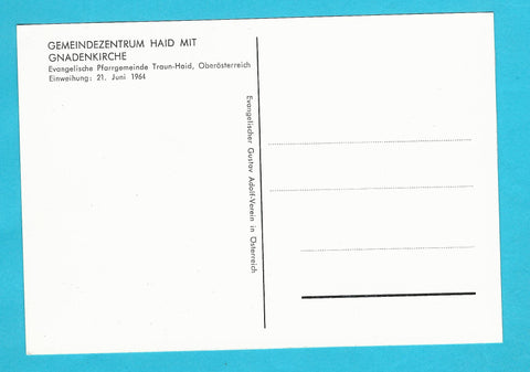 AK Gemeindezentrum Haid mit Gnadenkirche. Evangelische Pfarrgemeinde Traun-Haid. Einweihung 21. Juni 1964. Ungelaufen. Großformat. Zustand: gut.