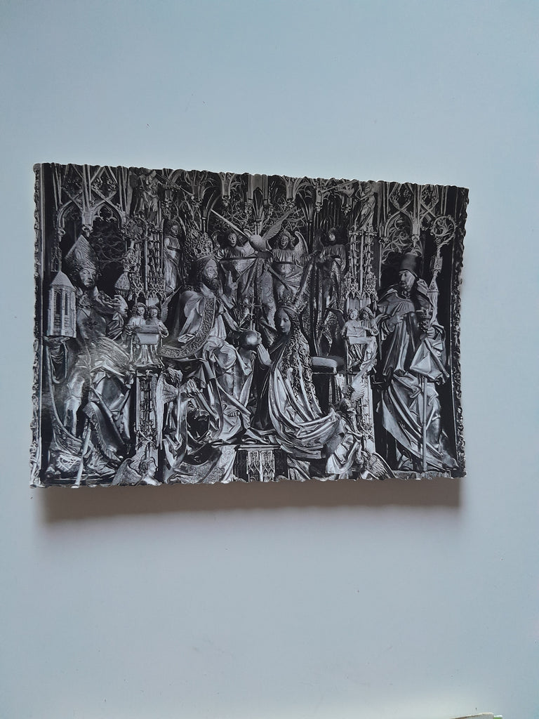 AK Mittelschrein des Altars in St. Wolfgang von Michael Pacher. Gelaufen. Großformat. Verlag: Cosy. Nummeriert: 65. Zustand: Kleberückstände an Rückseite.