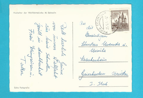 AK Hochaltar der Wallfahrtskirche M. Schmolln. Gelaufen. Großformat. Zustand: gut, rechtes oberes Eck geknickt.