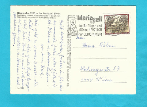 AK Bürgeralpe Mariazell. Gelaufen. Großformat. Verlag: Alpenland. Nummeriert: 11087. Zustand: linke Ecken und am oberen Rand angeknickt.