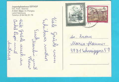 AK Eben im Pongau. Jugendgästehaus Steiner-Edthof. Gelaufen. Großformat. Zustand: linkes oberes Eck geknickt, Knick am oberen Rand in der rechten Hälfte.