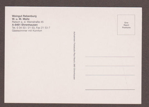 AK Ehrenhausen. Ratsch a.d. Weinstraße 45. Weingut Rebenburg. W. u. M. Maitz. Ungelaufen. Großformat. Verlag: Resch. Zustand: gut.