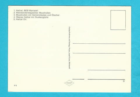 AK Erholungsgebiet Halltal - Mooshuben. Ungelaufen. Großformat. Kuss. Nummeriert: P 6. Zustand: gut, rechtes oberes Eck angeknickt.