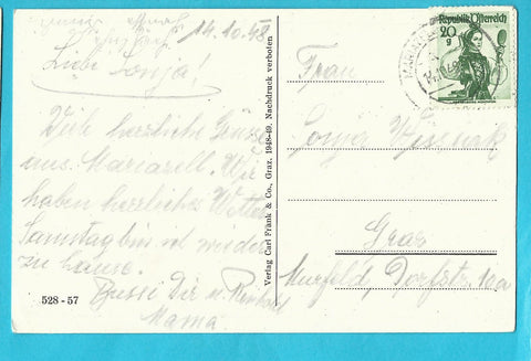 AK Erlaufsee bei Mariazell. (1948-49) Gelaufen. Kleinformat. Verlag: Frank. Nummeriert: 528-57. Zustand: untere Ecken geknickt, sonst leichte Randläsuren.