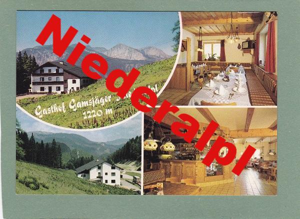 AK Gasthof Gamsjäger Niederalpl 1220m Ungelaufen. Großformat. Hüttenstempel. Verlag: Kurt Fasch Gloggnitz. Zustand: am oberen Rand leicht bestoßen, sonst O.k.