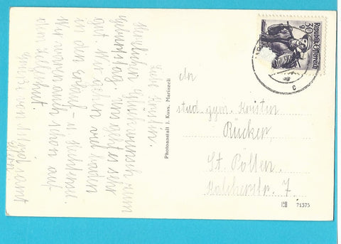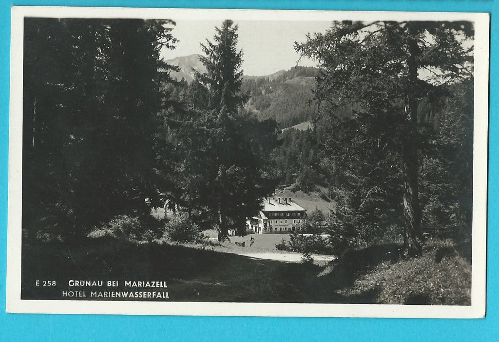 AK Grünau bei Mariazell. Hotel Marienwasserfall. Gelaufen. Kleinformat. Verlag: Kuss. Nummeriert: E 258. Zustand: gut.