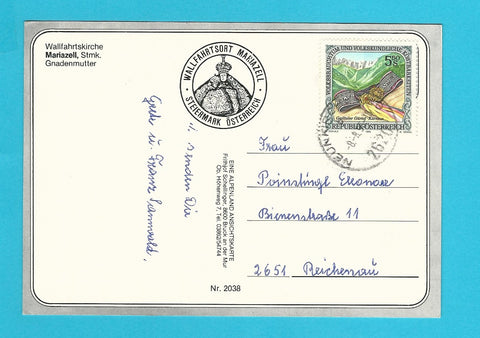AK Gruß aus Mariazell. Gelaufen. Großformat. Verlag: Alpenland. Nummeriert: 2038. Zustand: gut, linkes oberes Eck angeknickt.