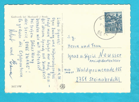 AK Gußwerk bei Mariazell. Gelaufen. Großformat. Verlag: Kellner. Nummeriert: 3657 FW. Zustand: leichte Läsuren.