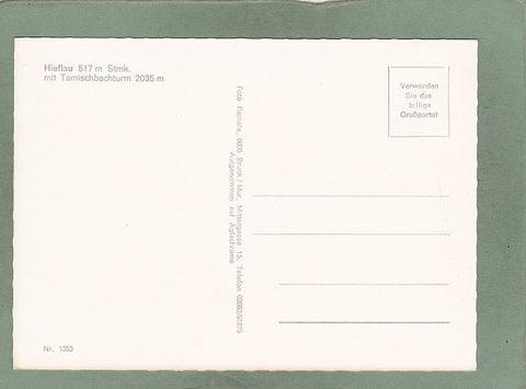 AK Hieflau mit Tamischbachturm. Ungelaufen. Großformat. Verlag: Remele. Nummeriert: 1353. Zustand: gut.