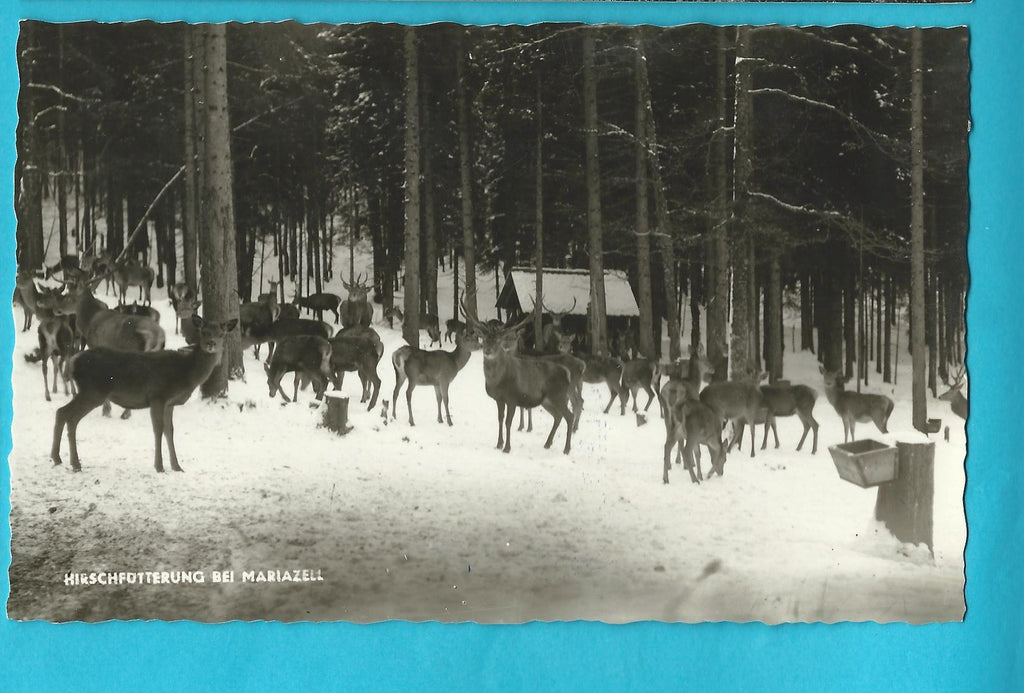 AK Hirschfütterung bei Mariazell. Ungelaufen. Kleinformat. Verlag: Kuss. Zustand: gut.