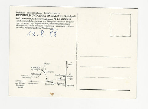 AK Leutschach. Eichberg-Trautenburg 74. Weinbau Buschenschank Reinhold und Anna Oswald. vlg. Spitzlgodi.