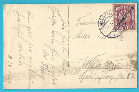 AK Mariazell. (1919-20) Gelaufen. Kleinformat. Verlag: Frank. Nummeriert: 728/40. Zustand: rechte Ecken und am rechten Rand geknickt.
