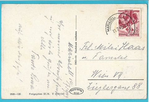 AK Mariazell. (1943-44) Gelaufen. Kleinformat. Verlag: Frank. Nummeriert: 2528-128. Zustand: Ecken angeknickt.