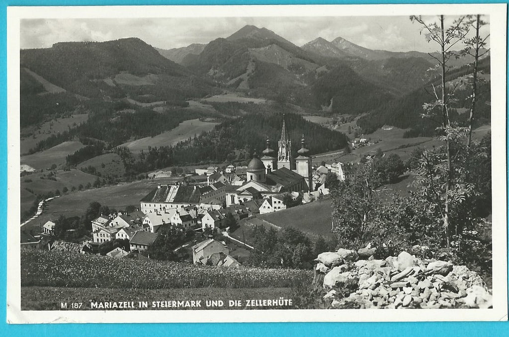 AK Mariazell. Gelaufen. Kleinformat. Verlag: Kuss. Nummeriert: M 187. Zustand: Ecken mit Steckalbumdruckspuren, linkes unteres Eck geknickt.