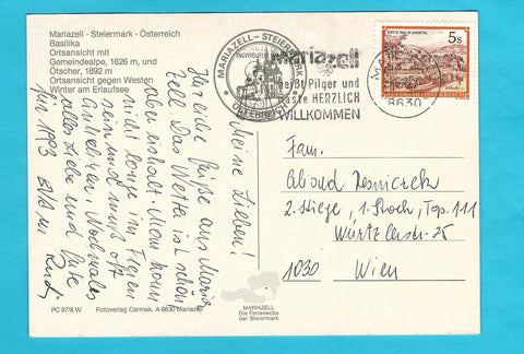 AK Mariazell. Gelaufen. Großformat. Verlag: Cermak. Nummeriert: PC 87/8 W. Zustand: linkes unteres Eck geknickt, sonst leichte Läsuren.