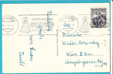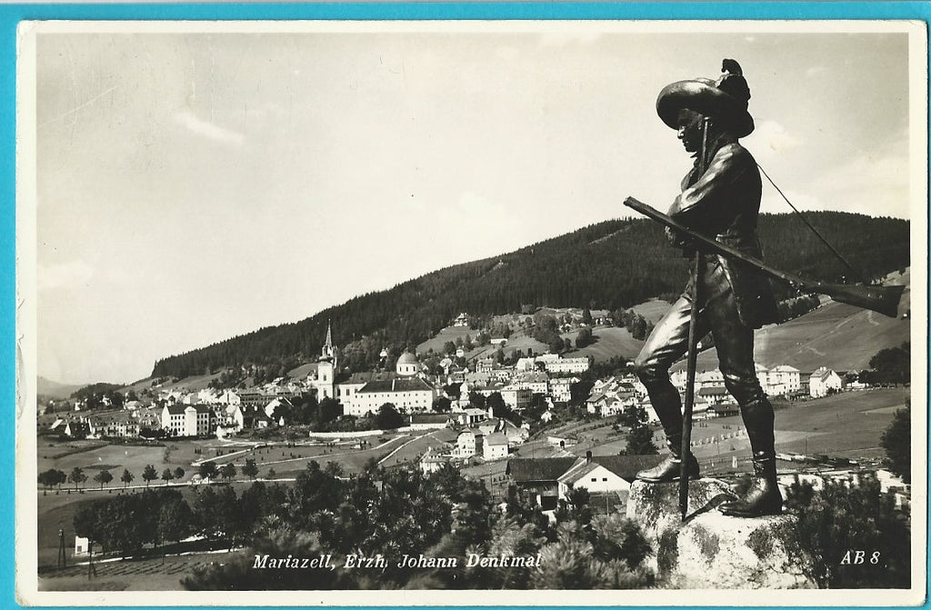 AK Mariazell, Erzh. Johann Denkmal. Gelaufen. Kleinformat. Verlag: Kuss. Nummeriert: AB 8. Zustand: Ecken und am Rand etwas angestoßen.