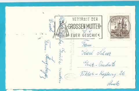 AK Mariazell gegen Hochschwab. Gelaufen. Kleinformat. Verlag: Ledermann. Nummeriert: 47810. Zustand: gut, wenig bestoßen.