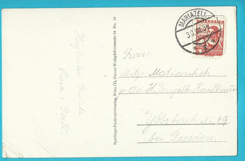 AK Mariazell gegen Hochschwab. Gelaufen.Kleinformat. Verlag: Sperlings. Nummeriert 19. Zustand: rechtes unteres Eck mehrfach geknickt.