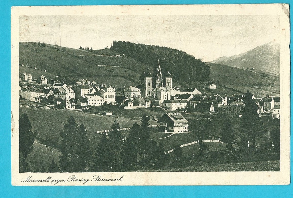 AK Mariazell gegen Rasing. (1927) Gelaufen. Kleinformat. Verlag: Radinger. Nummeriert: 3008. Zustand: Ecken angeknickt.