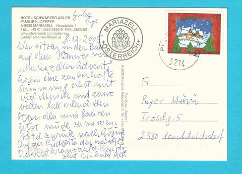 AK Mariazell. Hotel Schwarzer Adler. Familie Kloepfer. Hauptplatz 1. Gelaufen. Großformat. Verlag: Kuss. Zustand: gut, linkes oberes Eck angeknickt.